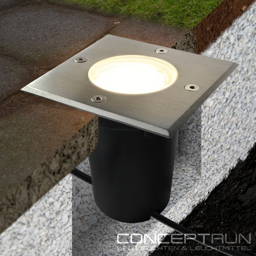 LED Bodeneinbaustrahler Edelstahl Außenleuchte IP67 GU10-230V (Quad)