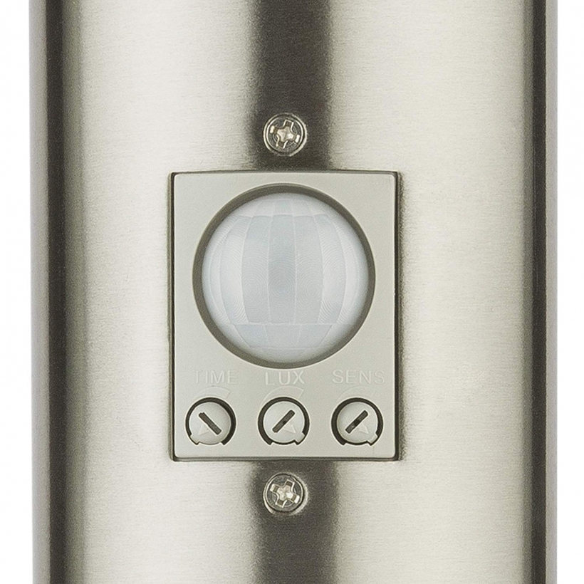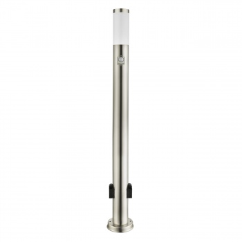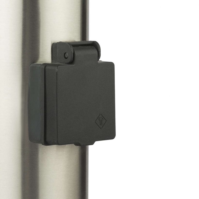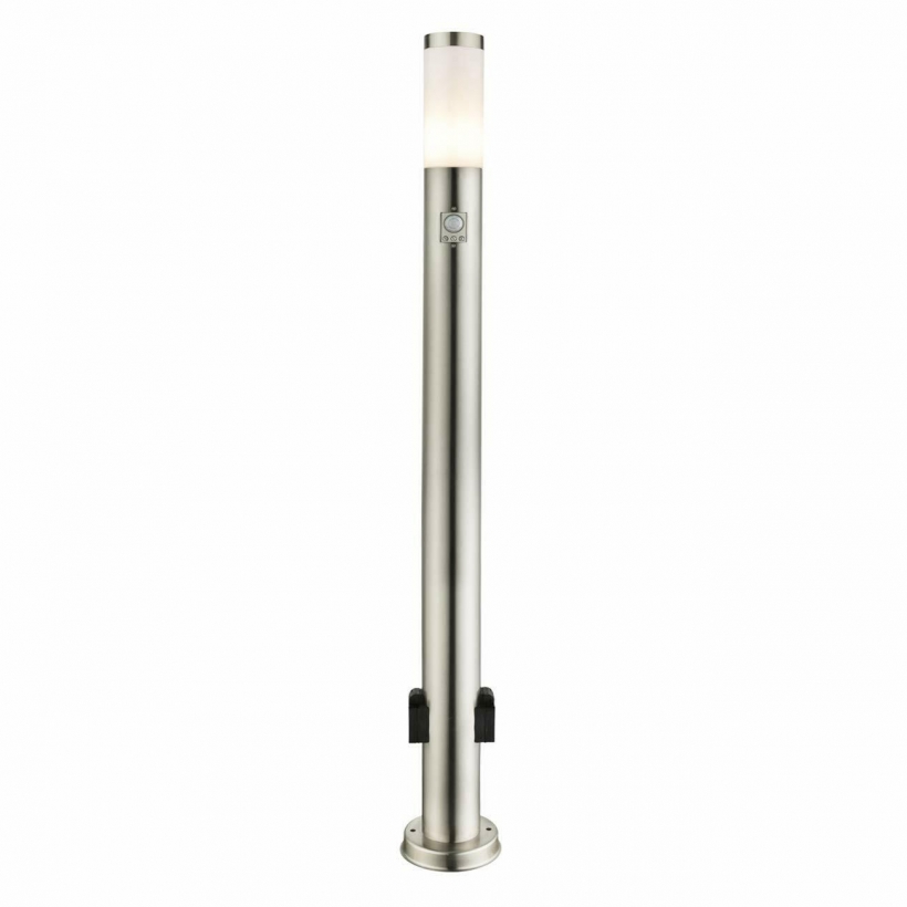 Die Standleuchte ist mit zwei Steckdosen sowie einem Bewegungssensor und Dämmerungssensor ausgestattet.