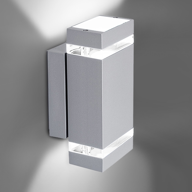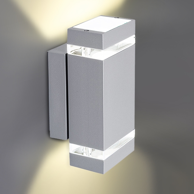 LED Wandleuchte Wandlampe Außenleuchte Aluminium 2-Flammig grau GU10-230V (Form:W51)