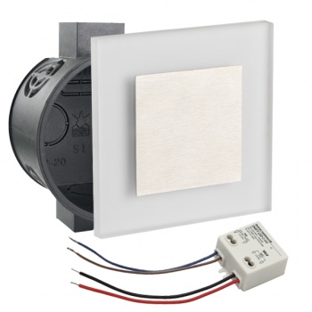 LED Set Wandeinbaustrahler warmweiß flach Satinglas quadratisch inkl. Unterputzdose und Trafo für 230V WB1
