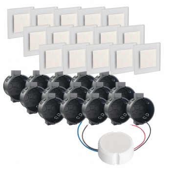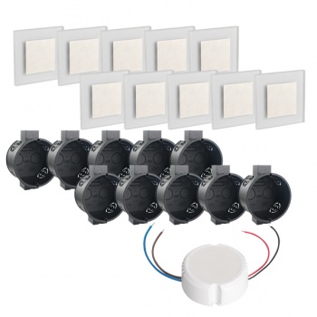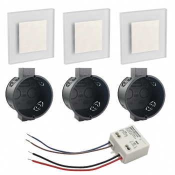 LED Set Wandeinbaustrahler warmweiß flach Satinglas quadratisch inkl. Unterputzdose und Trafo für 230V WB7