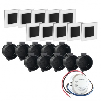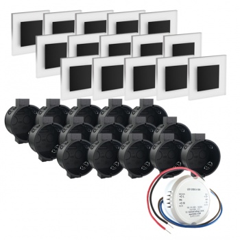 | Lieferumfang: | Wandeinbaustrahler (Menge je nach Setgröße), Unterputzdose (Menge je nach Setgröße), 1x Trafo für 230V (Ein Trafo für die jeweilige Setgröße) |