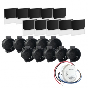 | Lieferumfang: | Wandeinbaustrahler (Menge je nach Setgröße), Unterputzdose (Menge je nach Setgröße), 1x Trafo für 230V (Ein Trafo für die jeweilige Setgröße) |