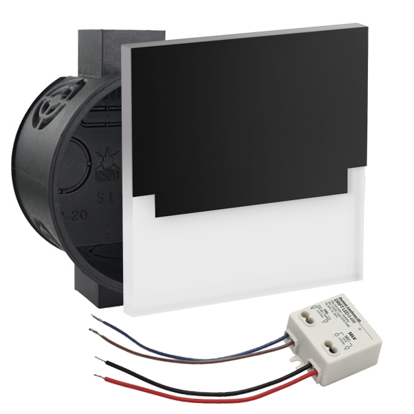 | Einbaumaß ca.: | Breite: 60mm / Länge: 60mm / Tiefe: 23mm / Tiefe (Inkl. Netzteil): 30mm | ||