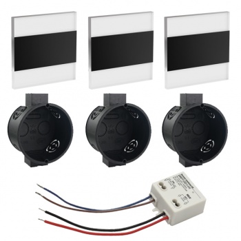 LED Set Wandeinbaustrahler warmweiß flach Satinglas quadratisch inkl. Unterputzdose und Trafo für 230V WB7