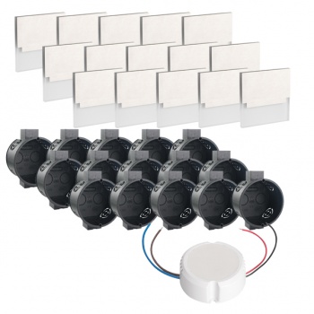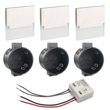 | Lieferumfang: | Wandeinbaustrahler (Menge je nach Setgröße), Unterputzdose (Menge je nach Setgröße), 1x Trafo für 230V (Ein Trafo für die jeweilige Setgröße) |