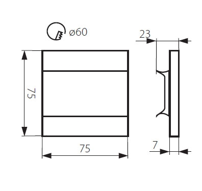 | Einbaumaß ca.: | Breite: 60mm / Länge: 60mm / Tiefe: 23mm / Tiefe (Inkl. Netzteil): 30mm | ||